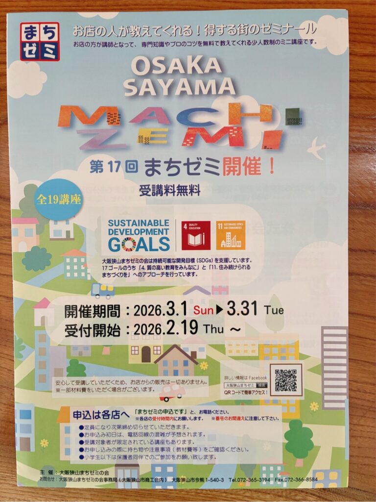 大阪狭山まちゼミ会より、第17回まちゼミが開催されます!